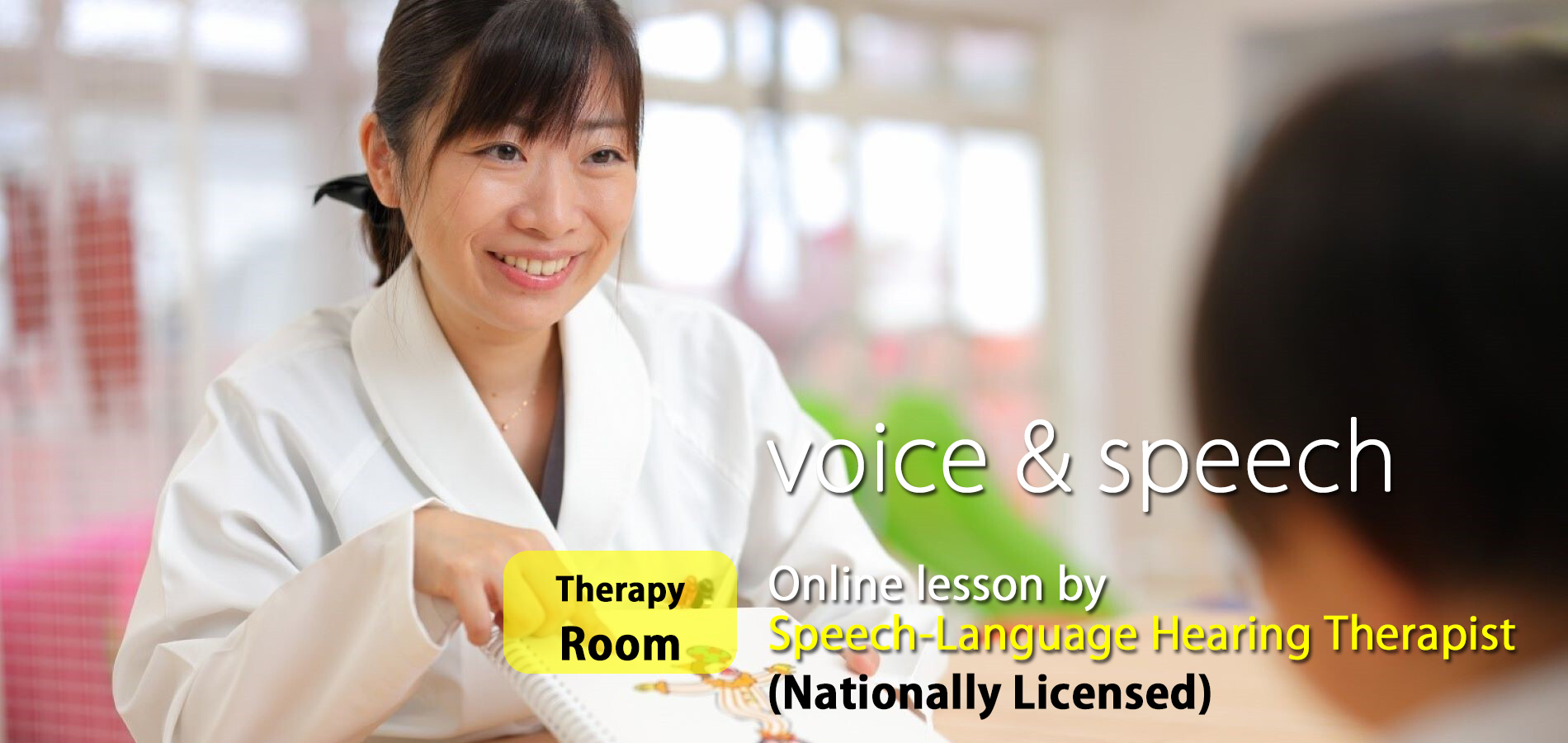 Our therapy room is staffed by nationally certified speech-language-hearing therapists who specialize in training enunciation and pronunciation .